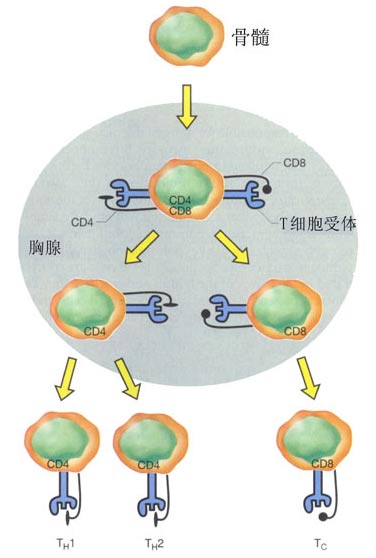 胞中的T细胞为核心的免疫应答反应。当T细胞与某些病原体接触后,一般在巨噬细胞参与下,T细胞进行分化、增殖为免疫T细胞,其中主要是辅助性T细胞I(CD4 ThI细胞)和细胞毒性T细胞(CTL细胞)。CD4 ThI细胞能产生多种细胞因子,引发迟发型超敏反应和激活CTL细胞等,将入侵的病原体,尤其是胞内寄居的病原体杀灭。
