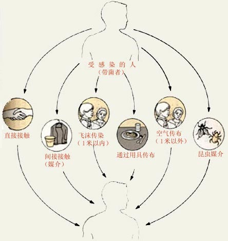 针对各种传染病的不同传播途径,制订切断措施。对肠道传染病,着重在管理饮食、管理粪便、保护水源、环境卫生、餐具消毒、个人卫生等措施。对呼吸道传染病,必须保持公共场所的空气流通,必要及可能时进行空气消毒,戴口罩就是一种简便易行并有一定效果的预防措施。对通过昆虫叮咬传染的虫媒传染病,应采用药物或其它措施,进行防虫、杀虫、驱虫的卫生运动。