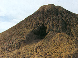 有趣的是,北侧泥火山的腰部套着个直径约0.6米的洞穴。这个洞穴到底是怎样形成的,说法不一。有人分析是另一个小的泥火山的喷口,认为由于小喷口的不断喷发使其上部大喷口流下的泥浆无法将之封闭,便形成这大小泥火山相套的奇观;有人则推测是什么动物为筑穴而刨出来的;也有说是人力所为。