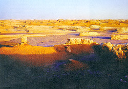 在新阿不旦,这是热合曼老人第二次搬家的地方,热合曼曾经住过的房屋墙壁还在。老人感慨地对我们说:“当年这墙前面都是水呀、芦苇呀什么的,我打鱼就在这里,现在怎么就变成这个样子了?”热合曼老人的话,让我们感到一百年虽然并不漫长,但是环境变化却是太大了。我相信,每一个到过这里的人都会有同样深刻的感触,那就是环境与人类之间是唇亡齿寒的关系。如果人类无节制地向大自然索取,去破坏生态环境,它带给人类的也将是永远难以愈合的伤痕。