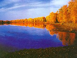 塔里木河下游“绿色走廊”的治理问题,受到了有关部门的关注。2001年初,朱槠基总理主持国务院总理办公会议,批准了塔里木河流域综合治理方案,拨107亿元巨资开展各项工程,以挽救塔里木河下游生态环境。到目前为止,已向下游四次输水。在我们沿塔里木河下游考察期间,正值第四次向下游输水,源源不断的清水向下游奔流而去。断流30年的塔里木河经过第四次输水后,其尾闾台特玛湖形成的水域面积已达28.7平方公里,沿河地下水位平均抬升3~5米。由于有了水的滋润,使下游的生态环境发生了明显变化,两岸植被复苏,枯老的胡杨发出嫩枝,在水流过的地方,红柳幼苗也出现了。输水也为野生动物提供了食物、饮水和栖息条件,现在已可见到有鹅喉羚等野生动物到河边饮水,鹳、鹭鸟等水禽在水中觅食鱼虾。