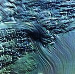 阿留申群岛上空的云彩(北美) 这是阿留申群岛(环布于阿拉斯加半岛尖端的弧形岛屿)西部上空的云彩,这些云彩颜色的变换是由于组成这些云的水滴大小和温度的不同造成的。拍摄时间:2000年6月16日