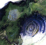 兰伯特冰河上的冰瀑布(南极) 兰伯特冰河是世界上最大的冰河。图的中央是流入兰伯特冰河的瀑布。这些来自南极高原大冰源上的冰可以像水一样流动,尽管速度很慢。从图中可以看出,当这些冰缓慢流入400米深的兰伯特冰河时,冰瀑布上出现的裂缝。拍摄时间:2000年12月2日