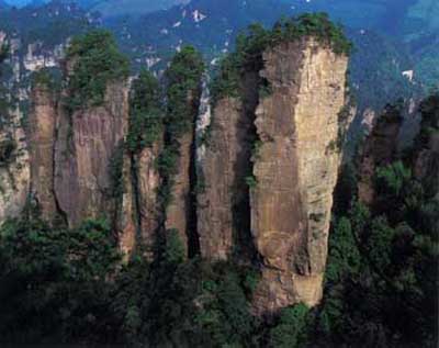 五指峰是五根并列的石柱,长短不齐,间隔有致,极像伸开的五个手指。