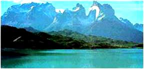 帕伊内角峰 南美安第斯山脉是由花岗岩组成的火山链,上面覆盖着一层板岩。在有些地方,大块的地下花岗岩因地寒风的运动而被抬升,突破地壳表面以后呈石柱状。后经冰川侵蚀,柱顶变成了曲面,两侧面却相当陡峭,有些简直就是直立的。 智利南部的帕伊内角峰就是这样形成的。它们是两个带粉红色的灰色花岗岩峰,顶部为黑色板岩,高高耸立在起伏的草原、长着红黄绿三地毯般苔藓的沼泽以及平静清澈的湖面之上。每个山峰的高度大约仅2545米,但令人惊奇的是它们犹如摩天大楼般屹立在周围土地之上。