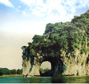 图1:久负盛名的桂林“象鼻山”,因地下河切蚀形成, 后因地壳上升,出露地面。
