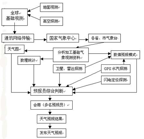 在我们的日常生活中,都离不开天气预报。但是你知道天气预报是怎样做出来的吗?下面简单的介绍一下天气预报流程: