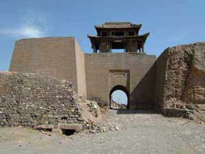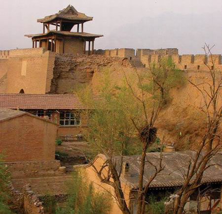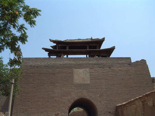 全城大约500米见方,四面城墙早已不能连成一圈,残损得厉害,只有东城墙保存得还算完好,那段据说用石子敲打会发出像小鸡咕咕叫似的声音的城墙下有几个游人;城内,只连接东西城楼的东西大街还称得上坦途大路;长疯了的蒿草,在七零八落的屋脊上招摇着。