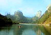 武夷山风景名胜区位于福建省西北部武夷山市境内,在市区以南约15公里,处在武夷山脉北段的东南麓,景区面积约70平方公里。这里是典型的丹霞地貌,亿万年大自然的鬼斧神工,形成了奇峰峭拔、秀水潆洄、碧水丹峰、风光绝胜的美景,古人说它“水有三三胜,峰有六六奇”,被誉为“奇秀甲东南”。