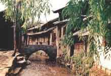 丽江古城还以不筑城墙而驰名。据说因为古代丽江世袭的统治者均姓木,若筑城墙、木字加上框便成了“困”字、因而古城没有城墙。古城房舍均为土木瓦顶结构,院内遍植花木,古色古香,纳西人的造诣和审美情趣由此可见一斑。古城人家颇好客,谁进哪一院都会受到主妇们的殷勤接待,备感温馨。晚间,古城内还举行东巴洞经音乐演奏会。