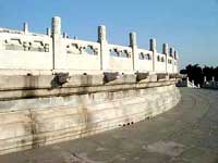 站在圜丘台中间的圆心石上轻轻唤一声,就立即从四面八方传来回声,好似众人齐鸣,一呼百应。封建帝王附会说这是皇天上帝在向凡人发出“圣谕”。其实,这种现象是声波被阻的回音。从圆心石发出的声波传到四周的石栏以后,就同时从四周迅速反射回来,声波振动较大;又由于圜丘坛的半径较短,所以回声很快。据测试,从发音到声波返回到圆心的时间,总共只有0.07秒,所以站在圆心石上的人听起来,声音格外响亮。因此,圜丘坛上的圆心石又称为“亿兆景从石”。