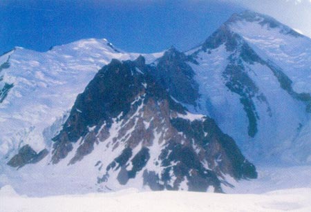 加舒尔布鲁木山 第2峰 海拔8034米,位于喀喇昆仑山脉的主脊线上,在乔戈里峰东南方向约26公里处,它也是中国与巴基斯坦的分界峰,东经76°42′,北纬35°40′,该峰有4条山脊,其中西北山脊和东山脊是喀喇昆仑山脉主脊线的一部分,其北侧在中国境内,南侧在巴基斯坦境内。 山峰高峻,峰额直插云霄,而陡峭的坡壁上则被冰雪所覆盖,周围地形复杂,北侧尤甚,且雪崩频繁,攀登极为困难。1956年7月7日,奥地利的三名登山队员,首次从西南山脊登顶成功,但至今尚没有人从中国一侧(北侧)登上顶峰。
