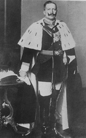 威廉二世1859年1月出生于波茨坦,从小就接受了良好的贵族教育。大学毕业后,他按皇家惯例到军队服役,并于1885年被任命为波茨坦第一近卫军团司令,可谓少年得志。1888年3月9日,老皇帝威廉一世因病逝世,王储腓特烈继承了皇位,称腓特烈三世。可这位皇帝体弱多病,继位不到一百天便晏驾归天。于是,身为太子的威廉二世便顺理成章地登上皇位,时年仅29岁。