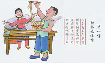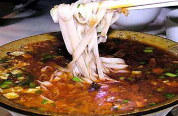 俗称“八百里秦川”的关中盛产小麦。小麦也就成了关中人的主要食粮之一。而面条则是关中人最主要的饮食。关中人吃面,喜欢将面和硬揉软,擀厚、切宽,并称之为“biangbiang面”。这种面煮熟以后,捞在碗里,无论是浇肉臊子,还是泼油辣子,吃起来都很光滑、柔软、热火、有筋性。既可口,又耐饥。