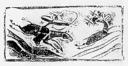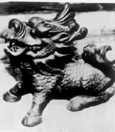 由于艺人们的发挥创造,大量的动物外形都不同程度的龙形化了(图六四),  图六四    龙的图案广泛应用在装饰艺术领域之中。在中国民间节日里,舞龙、「龙舟竞渡」成为重要的游艺活动。到了近代,龙甚至成为世界华人心目中的共同感情维系和象征。龙文化成为人类文化史的十分有趣的研究课题,「千古龙蛇」之谜仍将继续存在。