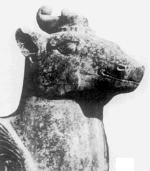 唐代亦称翼马,为最高统治者权威的象征,以示尊贵和祥瑞之意。唐建陵、乾陵翼马造象尤为杰出,造型与真实马形接近,双翼图案极富于装饰性。又《山海经,北次三经》载:「马成之山……有兽焉,其状如犬而黑头,见人则飞,其名曰天马。」〔神羊〕瑞兽之一。在吉祥图案中有:「三羊开泰」、「五羊开泰」等。羊自古以来即为吉祥的象征(图六九),「吉祥」之