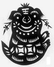 虎是中国土生土长的动物,在百兽之中,人们把虎誉为「山中之王」。千百年来。人们从畏忌到敬爱再奉之为神,认为它具有祛邪辟鬼的神力(图四九)。据《周礼」记载,当时已有在大门上画猛虎作守门的习俗。古人又多雕石虎以镇宅、镇墓(图五○),这个习俗一直流传至今,春节期间贴的门神和窗花多有虎的形象。自古以来,称英勇善战的将军为「虎将」,少年勇士为「虎子」;武官坐椅常披上虎皮,房中常悬中堂虎画,虎符象征兵权,兵士用的质牌常画有虎的图案;民间形容娃娃壮健,称为「虎娃」、「虎妞」。以虎为题材的器物、工艺品很多(图五一,五二,五三)。
