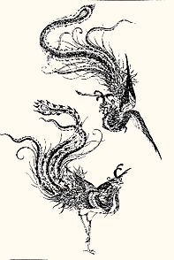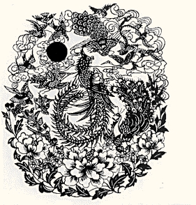 src="/history/UploadFiles_9744/200701/200711910185487.jpg" width=79 border=0> 图一图二图三 后来,凤纹就越来越普遍而清楚地镌刻在商、周时期的青铜器上,不仅作为一种实用图腾标记,而且逐渐推广而成美的艺术形象。二是彩鸟祥瑞说。此说本于《山海经·南次三经》:穴之山,其上多金玉,丹水出焉,而南流注于渤海。有鸟焉,其状如鸡,五彩而文,名曰凤凰。……,是鸟也,饮食自然,自歌自舞,见则天下安宁。」《异物志》也说:「其鸟五色成文,丹喙赤头,头上有冠,鸣曰天下太平,王者有道则见。」后世人便一直认为,五彩鸟如果一出现,就是凤无疑,她象征着祥瑞,如《汉书》、《后汉书》、《三国志》及《晋书》中都曾记载五彩鸟的出现之事。秦汉以来。凤鸟的形象就多是这种神化的美丽巨鸟。汉代的《山阳麟凤碑》上刻有凤凰形状,下面注曰:「天有奇鸟,名曰凤凰。」。四川出土的「凤凰出」砖,在长方形砖体上镌刻一只娟秀美丽的长尾大鸟,「凤皇」两字在头部前方,「出」字在尾后下角处(插图四)生动地反映了当时人们渴望见到凤凰出现的善良愿望。一九七三年在内蒙古和林格尔出土的汉代壁画中,一只大鸟,身旁伴随着五只小鸟,(插图五)在大鸟颈下榜题:「凤凰从九韶」五字。以上这些图纹和描述,集中地代表了当时人们心目中的凤凰形象和实质。 图四图五 上述两种神话传说,流传于民间,人们无例外地以丰富的想象,对她作了不断充实的探索性的形象描绘,逐步成型。凤纹形象,体现了不同时期的文化艺术特点,充分表达了人们的理想、追求和意愿。秦汉时期,除凤凰形象的描绘以外,还有朱雀、鸾鸟、赤鸟、长离、鹏、雏等各种神鸟,形象大同小异,都是凤鸟的变体和异化,是凤纹丰富多彩的不同表现形式(插图六)。 图六 汉代对于「四灵」,有两个说法:一个是麟、凤、龟、龙;另一个为青龙、白虎、朱雀、玄武。凤凰或朱雀均为「四灵」之一,代表南方方位。《春秋演礼图》中说:「凤为火精,在天为朱雀」,明代李时珍在《本草纲目》中说:「凤,南方朱鸟可见,凤凰、朱雀、朱鸟实际上是指同一种神鸟。又《拾遗记》记述:「尧在位七十年……有祗支之国,献重明之鸟,……状如鸡,鸣似凤,能抟逐猛兽虎狼,使妖灾群恶不能害……其未至之时,国人或刻木,或铸金,为此鸟之状,置于门户之间,则魑魅丑类自然退。」据此,考古学家认为,汉画像石墓中,墓门铺首之上所刻对称鸟兽,其鸟具冠展翼,若凤凰者(参见《南阳汉画像集》),即取意于重明鸟也,认为她能驱退鬼蜮魑魅,故用以装饰拱卫墓门(插图七)和龙纹一样,世上本来并没有凤凰这一生物,凤纹是人的一种艺术创造,一种神化了的想像的生物,而凤凰的形象,在远古时期还是十分朦胧的和神秘的。 图七 因此,难怪有人考证说:「凤这种鸟的来踪去迹。是由燕子变成了孔雀」。最能概括说明被古人神化了的凤,要算《说文·部》中的注释了:「凤,神鸟也」。「天老曰:凤之像也,鸿前后,蛇颈鱼尾,鹳鸳思,龙文龟背,燕颔鸡喙,五色备举。出于东方君子之国。翱翔四海之外……」。《说文》中所描述的这种形象,对照汉魏时期的凤纹,足证其具有代表性。 二、凤的传说 在神化过程中孕育成长起来的凤鸟,在装饰艺术领域里,并不完全象龙纹那样显得神幻莫测。在某种意义上。她比龙纹更接近自然形态而更富于人性化,具有一定的情感因素,人们在崇仰中更感亲近和喜爱。传说在很早以前,百鸟无忧无虑地生活在美丽的大森林里,天天欢乐歌唱。有一只羽毛朴素的、不受群鸟注目的小鸟,名字叫做凤凰。她不像其他鸟儿那样,只管玩乐,而是从早到晚忙碌着采集各种果实,还把别的鸟扔掉食物一起收藏在山洞里。喜鹊讥笑她是「财迷精」,乌鸦讽刺她是「小傻瓜」。但凤凰并不生气,日复一日,年复一年地辛勤操劳。后来,有一年发生了大旱灾,茂盛的森林也几乎枯萎,百鸟找不到食物,有的头昏眼花,有的气息奄奄……这时,凤凰把自己多年积存的食物,一一分给百鸟,终于使众鸟渡过了难关。百鸟感激凤凰的救命之恩,赞颂她的高尚情操,每只鸟都从自己身上选了一根最漂亮的羽毛,做成一件五光十色、绚丽耀眼的「百鸟衣」,献给了凤凰。从此,凤凰成了最美丽的鸟,并被推选为「百鸟之王」。每年凤凰生日,百鸟都要飞去向凤凰祝贺。「凤凰」从此成为世上美好事物和崇高赞美的象征,而「凤凰」的形象,进入了装饰艺术,给这领域增添了无比的光彩。《东周列国志》记载一则故事云:秦穆公有一女,名弄玉。姿容绝世,聪颖无比,善吹笙,不求乐师而自成音调。穆公令巧匠剖玉作笙,弄玉吹之,声如凤鸣。穆公乃为之修筑「凤楼」,楼前并建「凤台」。一夜,弄玉在「凤楼」见天净云高,明月如镜,乃取出玉笙临窗而吹,其声清悦,回荡天际,忽闻和声随风传来,若远若近,幽雅清奇。弄玉停笙而听,则和声亦随之而止。弄玉惘然,置笙就寝。夜梦西南天门洞开,霞光灿烂,一英俊男子戴羽冠,披鹤氅,骑彩凤自天而降;登凤台,对弄玉曰:「吾乃太华山之主,上帝旨,与你完婚,天缘也。」腰间解下赤玉箫,倚栏吹之,彩凤争翼鸣舞,凤声与箫声相和,弄玉不禁神思迷恋……。次日,弄玉禀穆公,令人到太华山寻萧史归。穆公请奏箫。萧史才吹一曲,清风熠熠,奏二曲,彩云四合;奏三曲,白鹤成对,翔舞空中;孔雀数双,栖集林际,百鸟鸣,经多时方散。穆公惊问原委,萧云:「箫声和美,极似凤