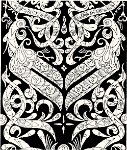 图二七图二八 大概由于「五彩大鸟」的高度理想化,汉代的凤鸟纹样雄伟而不强悍。汉代凤纹的另一个显著特征是,按不同的装饰物应用而采用适合的造型,如汉代漆器上的凤纹样、汉代瓦当、画像石上的凤鸟纹样、与汉代青铜器上的凤纹样都具有不同的个性特色。即使是一方小小的「肖形印」凤纹图案(插图二九 图二九)也别具风韵,其简洁、拙朴、浑厚的形式美至今仍为人们赞赏和乐道。 魏晋南北朝时期,凤纹的形式特征在汉代的基础上进一步深化发展,由于当时佛教的盛行而使凤鸟形象注入了新的精神理念。装饰题材扩大了,花卉缠枝纹样广泛应用,凤凰多采取在清新的花卉图案之中展翅飞翔之形象,显得格外的潇洒自如,轻盈妙曼。 唐代凤纹在中国封建社会中灿烂一时。当时的装饰艺术的形式感也更加强烈。人与社会的关系已成为实用美术常见的题材,在内容上更加富于生活的情趣。自秦汉以后,凤鸟的瑞祥观念稍见淡薄,各种新的形式便自然地脱颖而出,或清健、或壮美、或淡雅、或华丽。凤纹表现的各种形式,对唐代开拓的装饰艺术的一代新凤,起到了促进的作用。凤纹的造型更加「鸟体」化。许多铜镜上的凤纹(插图三○、三一)都轻歌漫舞、生意盎然,充满快乐情趣。成双成对的「鸾凤」,嘴上衔着一条打有「同心结」的飘带,和鸣祝颂,象征着美满幸福;这自然和辉煌的盛唐的物质文化生话息息相关,反映出升平的气象。另外。我们从唐代头饰及敦煌佛窟中出现的凤鸟图案上(插图三二、三三)可看到唐代凤纹进一步与人们的生活情趣相和合的现象。如女性头部装饰的金钗花冠上,凤纹以特有的丰腴的容姿,反映出时代的品味。 图三○图三一图三二图三三 宋元两代的凤纹,同样具有各自的特点。自唐代以后,中国瓷器工艺的发达,使凤纹获得了更加广阔的发展天地。宋元两代凤鸟装饰纹样,都可以从瓷器上找到许多优秀作例。如宋代江西吉州窑凤菊纹瓷枕,元代的各凤纹罐和青花凤首壶,「凤喜牡丹」执壶纹样等(插图三四、三五、三六),都极为典型。宋代的凤纹,喜用柔和的线条,显示怡然自得的情调。宋代装饰艺术在观念形态上偏重寓意,凤鸟纹样便也多吉庆如意的民俗思想愿望和气息。如政和年间的「凤穿牡丹」图案(插图三七、三八)已渐渐地成为程式化的表现方式。