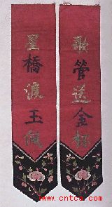 花卉组字刺绣对联(清)