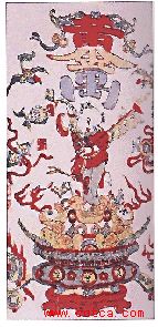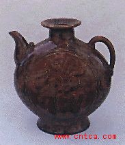 民间年画「黄金万两」(清)(江苏苏州)四十四点一乘二十四点一厘米画面上方有连笔画「黄金万两」四字,边旁填绘彩凤、双钱、方胜、宝珠等,寓意来年生旺,多进钱财。福字壶(现代)山东博山