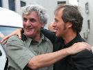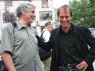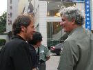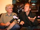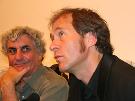 6月18日, 周日,北京气温升至近36摄氏度,再创2006年京城气温新高。下午6点,中国电影资料馆门前,一些文化青年内心的温度也窜至新高,静静地守候着于贝尔-苏佩,为期半个月的2006法国纪录电影展将在他的《达尔文的噩梦》之后圆满落幕。 由于堵车,于贝尔-苏佩比原计划晚到了半个小时,一下车就与提前到达的老师科洛尔(音译)拥抱在一起。科洛尔在巴黎大学教影视,他对记者说,作为于贝尔-苏佩15年的老师,两个人之间早已超越了师生之谊。在其后的答记者问以及同现场观众交流的环节中,二人随时关照,不时流露出亦师亦友的深厚情感。 放映影片之前,于贝尔-苏佩和老师一起接受了简短的专访,本网记者请科洛尔“简单评价一下自己十多年的学生”,老师很谦虚,说“在拍纪录片方面,他(于贝尔-苏佩)是我的老师。”科洛尔坦言,“他拍这部片子(注:《达尔文的噩梦》)出名以后,我们的关系有了微妙的变化,我们更像朋友了。”于贝尔-苏佩对此的解释是,“当时有人说我拍这部片子是受某个利益集团驱使进行的-性的宣传,这时,我的老师站出来为我辩护,‘这是从客观角度反映社会真相,我的学生在做电影,没有做-’” 107分钟的片长对观众是一个同压抑心理做斗争的过程,于贝尔-苏佩用4年的时间(他自称是“生命的十分之一”),一部DV外加一个话筒呈现出了种种苦难。不仅仅是非洲的苦难,不仅仅是黑人的苦难,更不单单是鱼的苦难,从很多画面后依稀可听到于贝尔-苏佩“全球化危险”的呐喊。