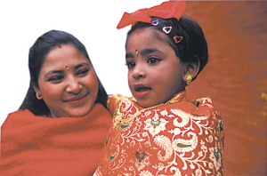 参加“益喜”仪式的小姑娘 尼瓦尔人认为,与人相比,果实更能带来永恒不变的姻缘 未成年少女与树上结的果实结婚,这么离奇的事你听说过吗?而在民俗习惯众多的尼泊尔,这只是数不清的奇风异俗之一。 尼瓦尔人是尼泊尔的土著民族之一,也是最富有艺术创造力的民族,如今保留在加德满都谷地的古代建筑,大都来自尼瓦尔人之手。在尼瓦尔人家里,从古至今没有一个女人会成为“寡妇”。因为尼瓦尔族女孩成年之前(一般在7-9岁之间),会跟象征着永恒婚姻的贝尔树果实举行婚礼,这个结婚仪式在尼泊尔语中叫“益喜”。“贝尔果婚”是尼瓦尔族女子人生当中的第一次婚姻。尼泊尔人很多信仰印度教,而这个婚姻的新郎就是印度教中的西瓦大神。他们相信,在“益喜”仪式举行以后,女孩便能够一生拥有西瓦大神的保佑。 由于贝尔树的果实外壳坚硬,可以存放