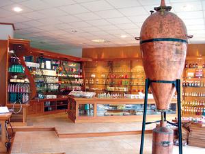 在进入格拉斯市的路口就有一家醒目的香水商店。未踏进门,一股混合的香气已经扑鼻而来。店堂不大,产品却很丰富。最抢眼的是巨大的蒸馏器和大束应季的薰衣草干花。里面的试香台供你试用任何一款香水。透过一扇玻璃门,可以看到调香师端着不同的试瓶边嗅边做着记录。往前不远,就是格拉斯的弗拉戈纳香水厂,工人正在里面做薰衣草香皂,那边的料倒进去,这边用模具塑形,将多余的软料除去,香皂就制成了。再往前是个销售间,一眼就看到鼎鼎大名的格拉斯五月玫瑰,闭上眼闻一下,似有千万朵玫瑰在眼前绽放。