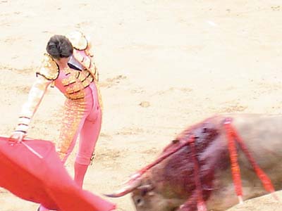 斗牛和奔牛是西班牙最不可思议的传统活动,此行刚好遇到斗牛季节的开始。在马德里天天都有很多斗牛场“开战”,当我们目睹斗牛士英姿下的鲜血,莽牛被杀倒地的残酷和惨烈,对西班牙人为何如此热衷斗牛不得其解。据说斗牛是农牧时期血祭杜牛向神祈求丰收的仪式,经时代演变成为以死为-注进行格斗的表演,是自西班牙传统中衍变而成的独特美学。