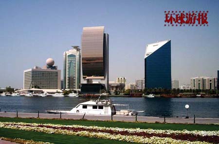 尽管一座座高楼大厦拔地而起,但是古老的迪拜城被作为一道独特的风景线被保留下来。迪拜河把迪拜分成Deira和BurDubai两部分,随着独桅帆船(DHOW)的缓缓前行,古老与现代和谐地交织在一起的美丽画卷在我眼前慢慢展开。一边是年轻的BurDubai,正在蓬勃发展;一边是古老的Deira,象征着迪拜的历史,年数已久的购物街,无数清真寺的尖塔仿佛要刺穿天空一样。