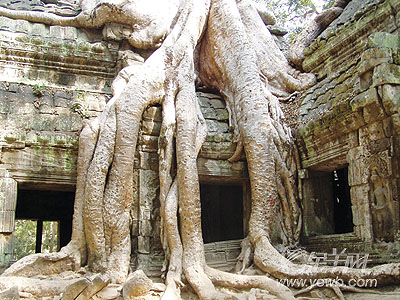 塔布笼寺为树根包围早就想去塔布笼寺看看被大树根包裹的石塔,这里是《古墓丽影》的外景地。塔布笼寺是座没有被修复的寺庙,至今保留着1858年法国人亨利·穆奥首次进入时的状态,它和我后来看到的圣剑寺(PreahKhan)、塔逊寺(TaSom)一样,呈现一种残缺壮观的美。庙里到处是倒塌的大石块堆成的废墟,许多大树的根部经过数个世纪的伸展,已经紧紧地包住了庙宇的塔顶,再从塔顶延伸到地面,因为树根的盘根错节,光线幽暗的庙里像迷宫一样阴森。