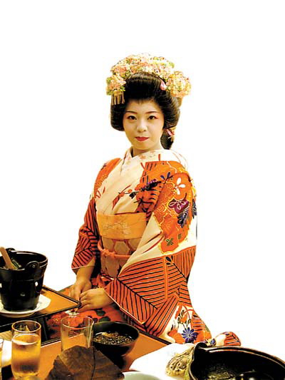 因为《伊豆的舞女》,所以对日本传统的跳舞女孩有着特殊的兴趣。终于在这家百年旅馆中见到两位年轻女子。她们脸上和脖子上都化着白白的妆,我们看不到掩藏在浓妆后面的真实面容,但这两个叫做“小太郎”和“美玲”的女孩和所有年轻的女孩一样,说话天真烂漫,她们热情地为客人舞蹈,并开心地和每个客人一起拍照。23岁的美玲学了5年舞蹈,赚的钱并不比其他女孩多,只是因为热爱所以舞到今日。