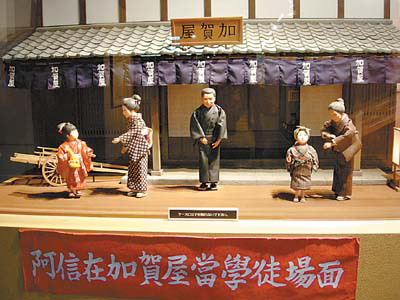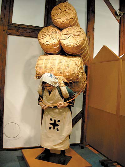 其中的庄内米历史博物馆不仅有阿信当时做学徒的场景重现,而且还以各种人偶表现当时人们背米进仓的情景。其中有一个人偶是一个清秀的妇女,弯着腰吃力地背着五袋有300公斤重的大米,据说如今这个人偶的原形已经90岁了,还健康地活着。