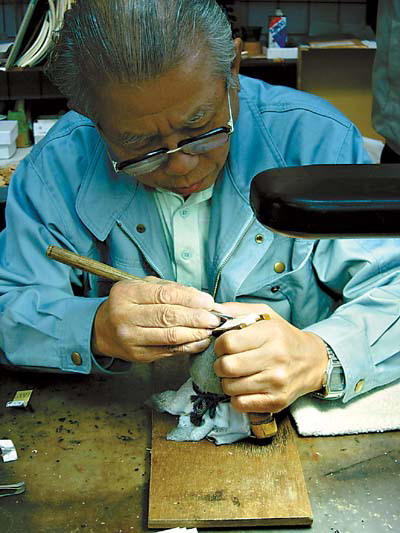 象棋在日本叫做“将棋”,和中国象棋长得不同,它的形状是上面小下面大,雕刻在棋上的字越到下面越丰厚稳重。在一家陈列着各国象棋的店里,就坐着一个专门雕刻的老工匠,在我们热情邀约下,他展示了象棋的制作过程,只见他先在一张白纸上将“王将”二字用毛笔写出来,然后用刀把它刻在象棋上面,最后上几层漆,晾干后成型。