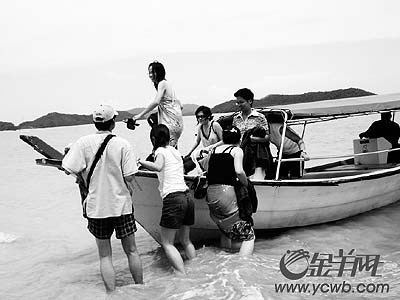 海中央,接过一个带钩的线轴和几块鱼铒。钓杆呢?带队的那个帅气的小伙笑眯眯地给大家示范:将钩子轻轻扔下海就可以了!