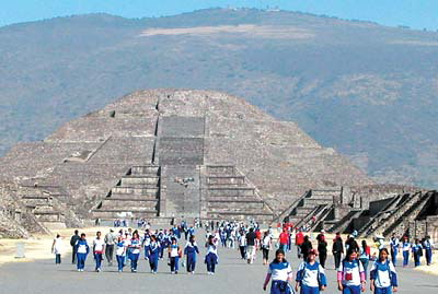 在位于墨西哥城区以北40公里的特奥蒂瓦坎的古老墨西哥金字塔