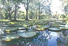 建于1796年,面积有2至3平方公里, 该植物园内种有许多珍贵的热带植物,有雄伟的参天古树、气根虬结的大榕树以及各种奇花异草。特别著名的是一池池叶大如盘的古睡莲-王莲,这种莲花是世界上最大的莲花 ,它们的叶子直径一般在2米左右,可以承受住一个婴儿的重量;还有一排排挺立的棕榈树,其中有一种百年才开一次花,花开之日这棵树也就枯死了,其花朵高达3米,是世界上最大的花。
