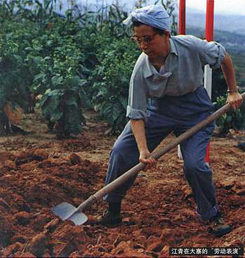 1975年9月和1976年9月, 江青两次来到了大寨,在虎头山下小住了半个多月。一次爬虎头山,江青兴致大发,突发奇想地要骑马。这下可把大寨人吓了一跳,莫不说山下那时节好像就没马,就是有马谁敢让她骑呢,万一走在半路上那马要发个小脾气什么的,把这位第一夫人摔下来了,谁负的起这个责呢?大寨人挠起了头皮,可没办法也得想办法呀,一通忙活之后,也不知是打马戏团借了一匹,还是江青来大寨时就带着一匹,反正人家是骑着头大白马登上了山。出发的时候,江青又像陕北人似的在头上围了条白毛巾,那边角还翘呀翘的,不愧是艺术家出身哟,啥事都能别出心裁独具匠心。 |