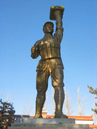*纪念馆雕像 针对某杂志报道, *生前战友捍卫英雄名誉 *,一位手托炸药包英勇炸敌堡的英雄。他的事迹写进教材。然而,英雄的壮举近日却被某杂志“戏说”:“谁也没有亲眼看见他托起炸药包,完全是根据一些蛛丝马迹推测出来的,他举炸药包牺牲是许多专家经过半年考察论证的。”此文一出,舆论哗然。到底是历史有误,还是有人别有用心,恶意炒作? 见证人一 “我看见他左手托着炸药包” 2006年5月初,已退休的沈阳军区文化站刘国彬大校,在协助军区《前进报》编辑“影视天地”专版时,随手拿起某杂志2006年第8期,阅读了《〈*〉“真实”创造的经典》一文后,他被激怒了。 为了辨明真伪,刘国彬从那一刻起,决定要为英雄“讨公道”。 “郅顺义不在了,上哪