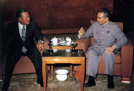(图为田中角荣访华与周恩来会谈)