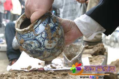 据丰台区文物所的吕所长介绍,这个墓穴可能是清朝光绪年间的一座普通人的墓穴,两个瓷罐都是“青花罐”是陪葬品。单从几块人的腿骨还不能分辨被葬者的性别、身份等个人信息,骨头长年埋在土壤里被腐化而显现出青绿色。