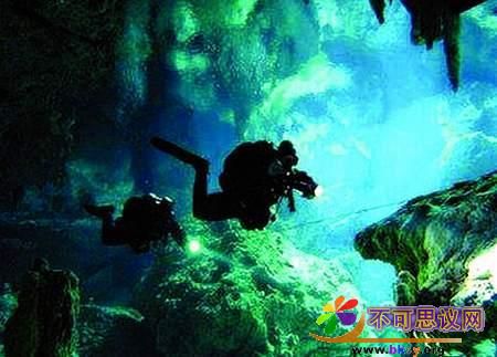 在墨西哥尤卡坦半岛浓密的灌木林中,隐匿着数千个这样的地下“水晶池”,它们形成了一个神秘的地下水世界。人们一直传说,在神秘的地下水世界中,尸骨和黄金堆积如山。美国研究人员和探险者带着氧气瓶、防水灯以及水下设备对一些坑穴进行了探查。