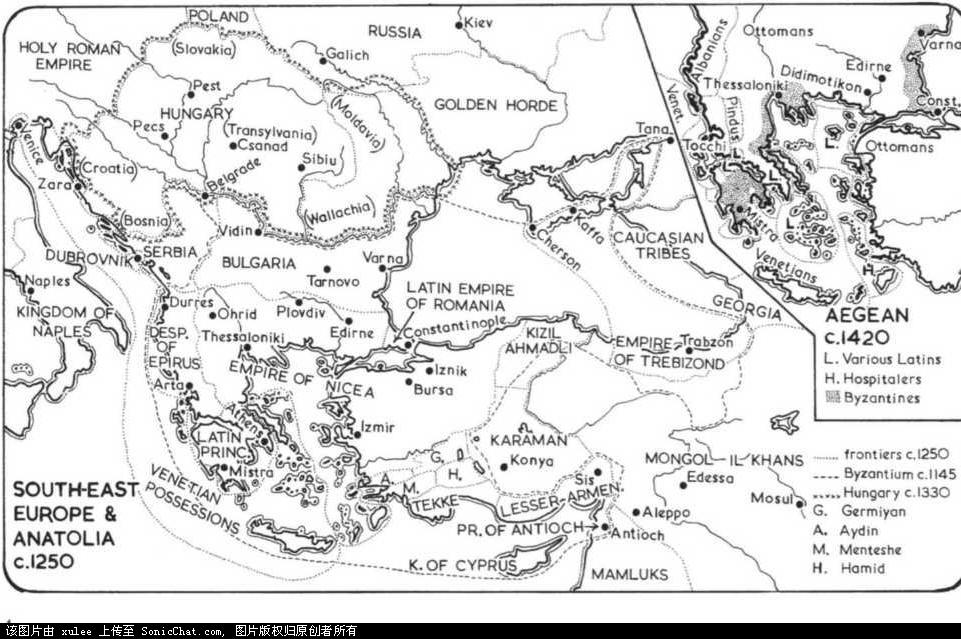 简介 中世纪东南欧的历史在西方,还不是研究得很透彻。这个区域经常被简单的认为是十字军去往圣地路过的地方。后来,在被奥托曼-土耳其入侵之前就已经分崩离析了。 但是,如果你稍微研究一下,就会发现,中世纪的匈牙利王国,拥有比法国更大的领土。此后的拜占庭帝国,更加具有扩张性和持续性。拜占庭的历史,比匈牙利或者之后的巴尔干小国的历史更广为人所知。从1071年曼兹科特战役战败于塞尔柱突厥人,到1453年,君士坦丁堡的陷落,大约有4个世纪,在这段时间内,一个希腊拜占庭随着第四次十字军东征恢复了,并且在这个地区一直有很大的影响力,直到被塞尔维亚人和奥托曼土耳其彻底摧毁。塞尔维亚人,是南斯拉夫的主体民族。他们在14世纪建立了自己的国家。而此时的保加利亚却再也回不到他们第一保加利亚帝国的荣光了(7-10世纪)。其他在这个充满冲突的巴尔干舞台上的还包括阿尔巴尼亚,瓦拉几亚,莫达维亚,特兰西瓦尼亚。这些地区组成了今天的罗马尼亚。而克罗地亚以及今天的南斯拉夫联邦的一些组成国家,都面对着奥托曼-土耳其的入侵。