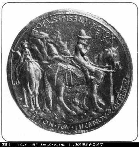 约翰·佩里奥洛格斯(八世)勋章,1437年。勋章上两个骑马的弓手的马带有土耳其式样的马具,以及短的马镫。只有他们的宽锥形的帽子才能表明他们是拜占庭人。