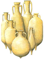 葡萄酒和橄榄油装在双耳瓦罐(amphorae)内,先运到台伯河口,转到小型驳船上,沿台伯河运达罗马城内的河码头。所有的瓦罐在码头上倒空,酒和油储存在一个个巨大的仓库内,大部分空瓦罐直接扔掉。就在台伯河码头旁,有一座人造的小山Monte Testaccio,高34米,周长1公里,就是由丢弃橄榄油瓦罐的碎片堆成。据估算堆成这样一个小山包至少需要五千三百万个瓦罐。