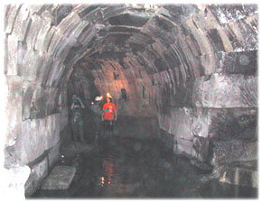 罗马城并没有一个统一的下水道系统, 各个区域都有它们的主下水道,分别流进台伯河。其中最著名的一条是Cloaca Maxima(见下图),长900多米,高4.2米,宽3.2米,现在还在部分使用。33BC阿格里帕曾亲自坐着小船,进下水道里视察。
