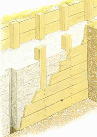 上图是罗马房屋的地基,先用木板围上,再一层层地浇上混凝土。地基打好后木架子通常就留在原处。