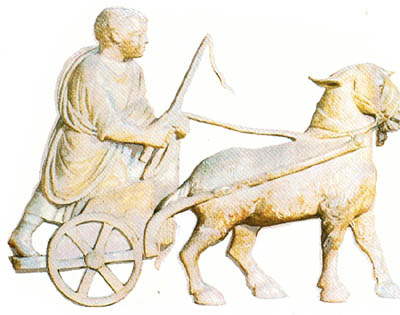 这是一辆由山羊拉的玩具车