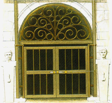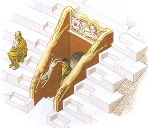 关猛兽的笼子和出入的通道。在右上角可以看到元老席的台阶很宽,可以放下椅子,不用坐在冰冷的大理石上。