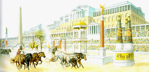 看过《宾虚》的人对罗马的赛车都会有深刻的印象,罗马城的赛车场好几处,最宏伟著名的是大赛车场Circus Maximus。